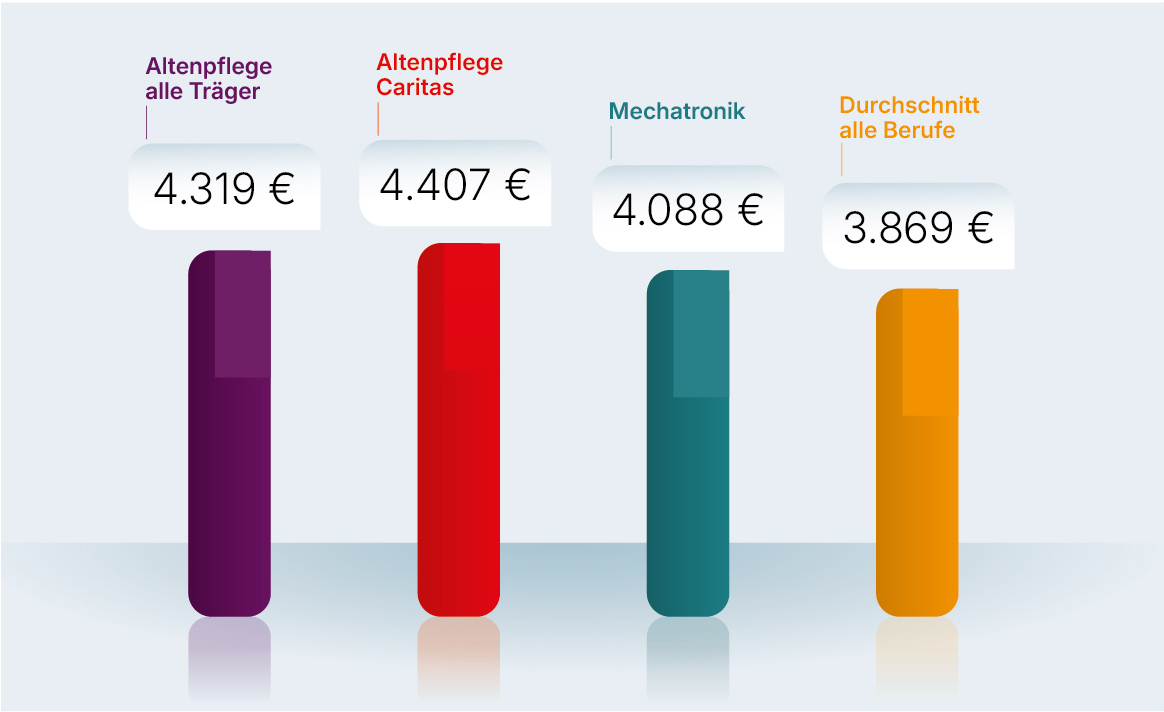 Die Caritas setzt damit auf nachhaltige Arbeitsbedingungen und eine Vergütung, die Pflegekräfte langfristig stärkt und die Zufriedenheit im Beruf fördert.