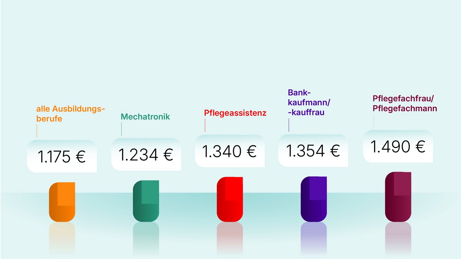 Auf hohem Niveau bewegen sich auch die Ausbildungsvergütungen. Auszubildende zur Pflegefachkraft erhalten bereits im ersten Ausbildungsjahr 1.480 Euro brutto im Monat und liegen damit weiterhin deutlich über vielen vergleichbaren Ausbildungsberufen.